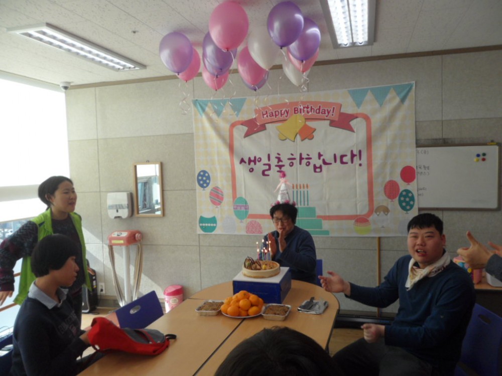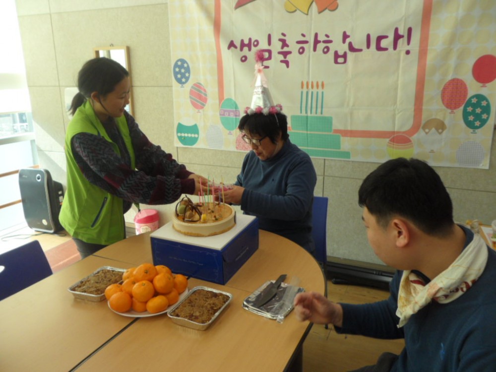 김포시성인장애인주간보호센터는 이용자 생일에 맞춰 생일파티를 진행합니다.