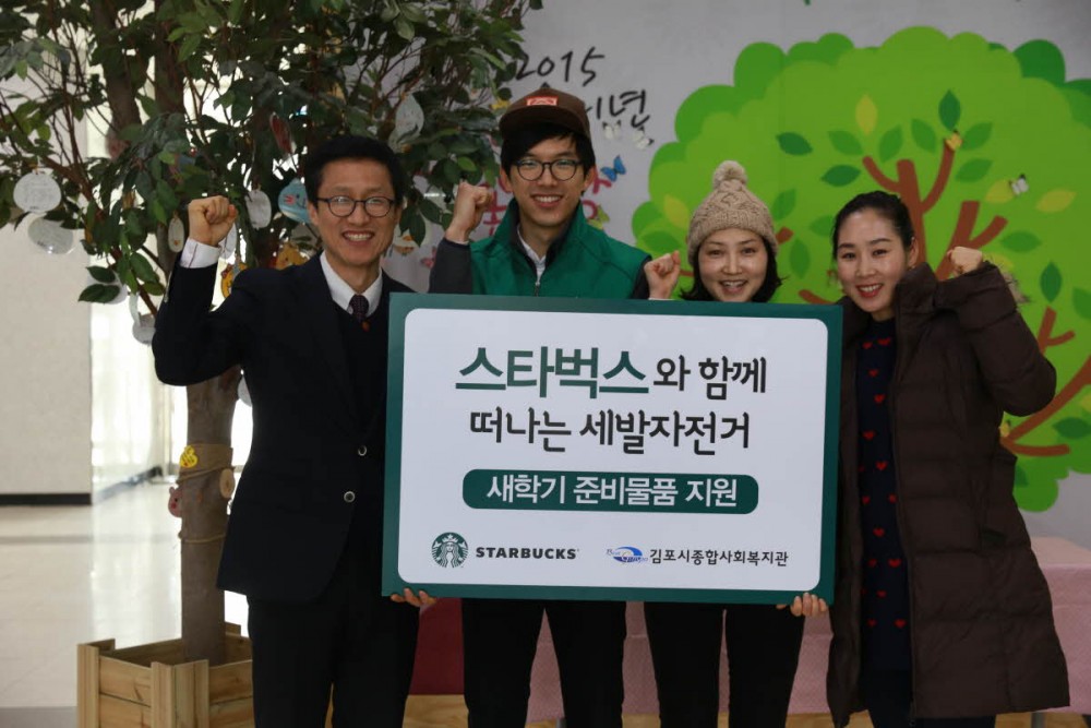 2014년 12월 16일 스타벅스에서 \"세발자전거로 떠나는 아름다운 여행\"에 새학기 물품구입을 위한 후원금전달식이 있었습니다.