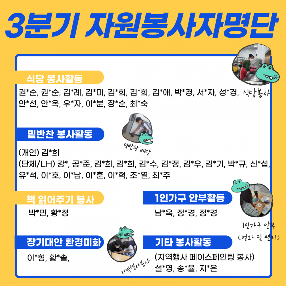 프린트 목록 2022년 3/4분기 자원봉사자 명단 페이지 정보 김포시종합사회복지관 조회 606 입력 2022-10-04 11:59 댓글 0 본문 2022년 3/4분기 자원봉사자 명단입니다. 김포시종합사회복지관과 나눔을 함께해주셔서 감사합니다. 첨부파일 3분기 자원봉사자 명단.png (351.0K) 20회 다운로드DATE : 2022-10-04 11:59:06 프린트 목록 이전글자원봉사자 나들이 "나들이 가기 좋은 날" 2022.11.16 다음글2022 자원봉사자 개인정보보호 및 인권교육 2022.09.15 댓글 0 댓글목록 등록된 댓글이 없습니다.