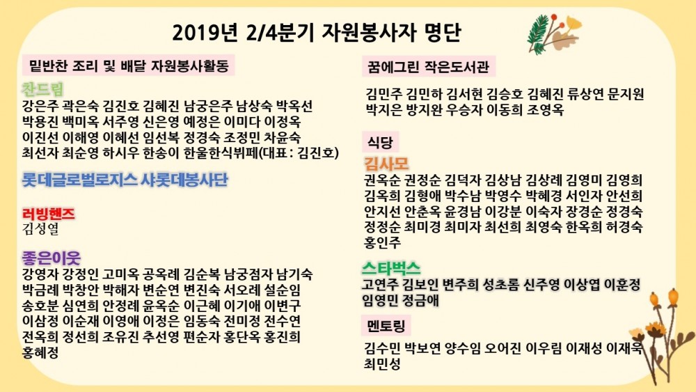 프린트 목록 2019년 2/4분기 자원봉사자 명단 페이지 정보 관리자 조회 1,027 입력 2019-07-02 20:03 댓글 0 본문 첨부파일 슬라이드2.JPG (232.5K) 43회 다운로드DATE : 2019-07-02 20:03:41 슬라이드3.JPG (238.2K) 42회 다운로드DATE : 2019-07-02 20:03:41 프린트 목록 이전글2019년 2/4분기 우수자원봉사자 2019.07.11 다음글2019년 1/4분기 우수자원봉사자 2019.07.02 댓글 0 댓글목록 등록된 댓글이 없습니다.
