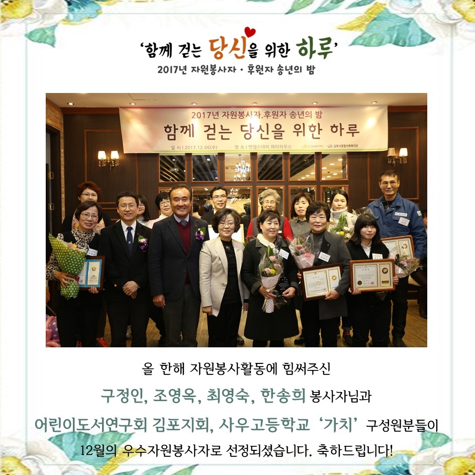 프린트 목록 2017년 12월의 우수자원봉사자(송년의 밤) 페이지 정보 관리자 조회 924 입력 2018-01-05 14:33 댓글 0 본문 첨부파일 12월.jpg (203.9K) 39회 다운로드DATE : 2018-01-05 14:33:27 프린트 목록 이전글2018년 1/4분기 자원봉사자 명단 2018.04.02 다음글2017년 10월의 우수자원봉사자 2017.11.30 댓글 0 댓글목록 등록된 댓글이 없습니다.