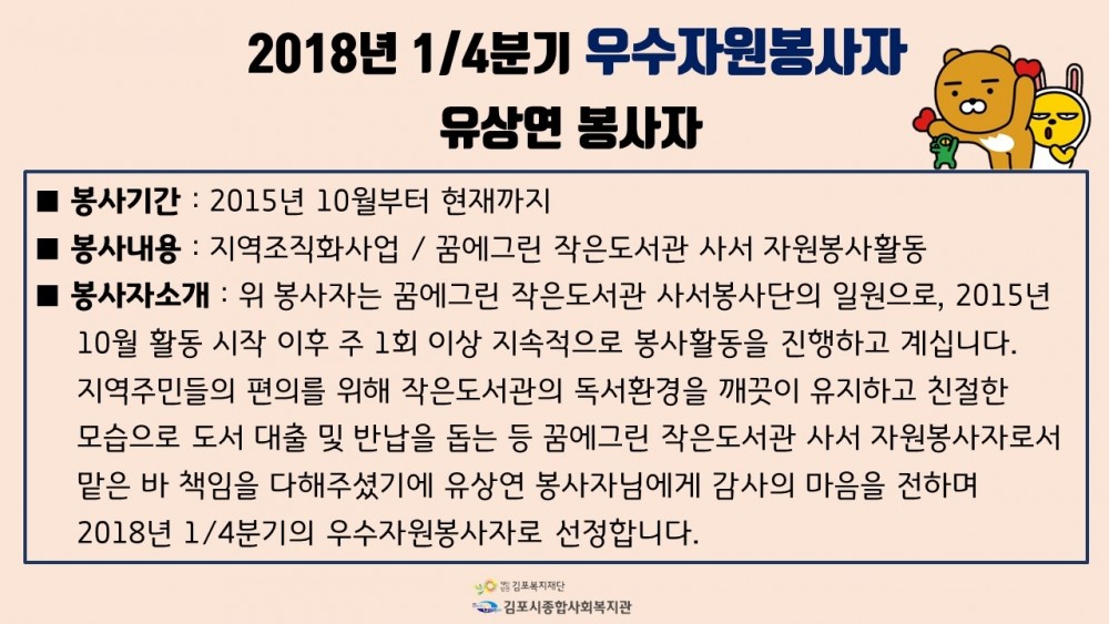 프린트 목록 2018년 1/4분기 우수자원봉사자 페이지 정보 관리자 조회 963 입력 2018-04-27 17:52 댓글 0 본문 첨부파일 우수자원봉사자_게시용.jpg (208.8K) 40회 다운로드DATE : 2018-04-27 17:52:48 프린트 목록 이전글2018년 2/4분기 자원봉사자 명단 2018.07.11 다음글2018년 1/4분기 자원봉사자 명단 2018.04.02 댓글 0 댓글목록 등록된 댓글이 없습니다.