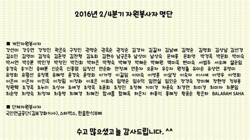 프린트 목록 2016년 2/4분기 자원봉사자 명단 페이지 정보 관리자 조회 956 입력 2016-08-09 11:21 댓글 0 본문 첨부파일 자원봉사자현황.jpg (287.8K) 38회 다운로드DATE : 2016-08-09 11:21:32 프린트 목록 이전글2016년 3/4분기 자원봉사자 명단 2016.10.05 다음글2016년 4월의 우수자원봉사자 선정 2016.05.09 댓글 0 댓글목록 등록된 댓글이 없습니다.